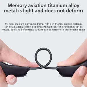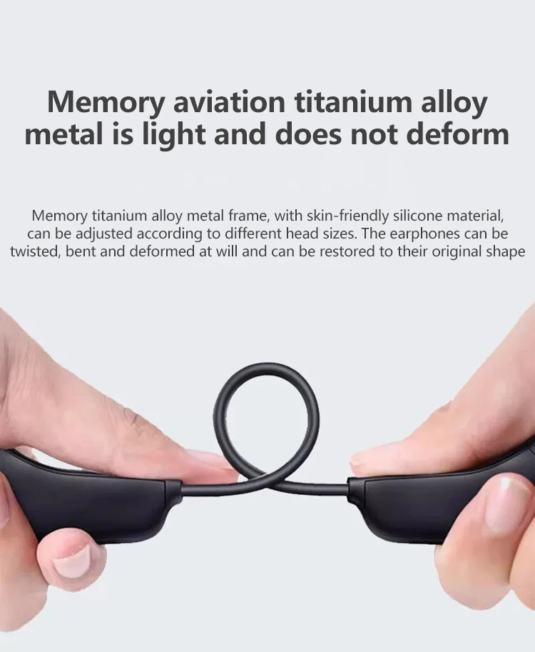 • Open-Ear Titanium Frame (hypoallergenic silicone) adjusts to any head shape, zero ear canal pressure.