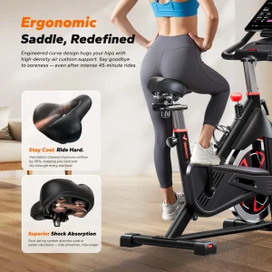 • USER-FRIENDLY BIKE: This workout indoor bike with high density foam and dual spring suspension design helps alleviate discomfort during your ride. The aluminum alloy pedal provides better flexibility, slip resistance, and safety. Additionally, the handlebars feature advanced ergonomic designs for a more comfortable grip, allowing you to focus on your workout without distractions